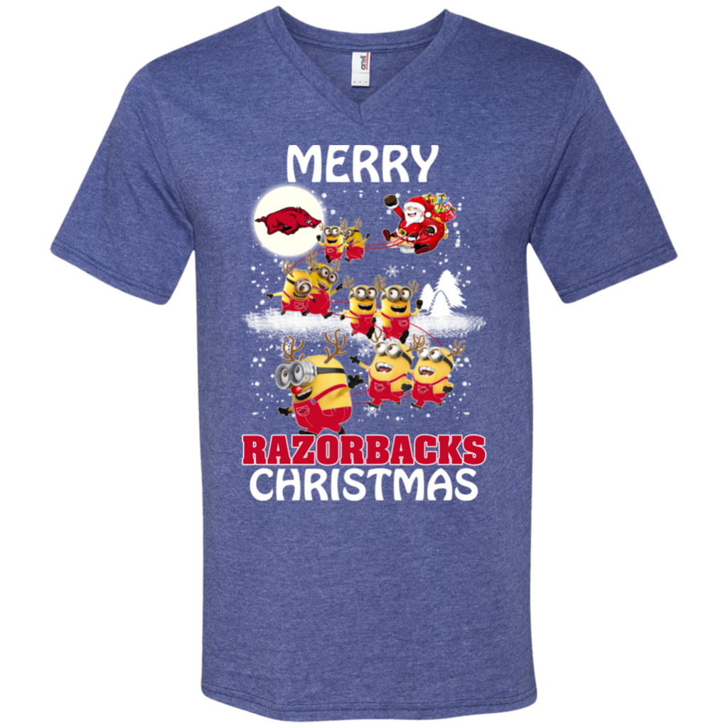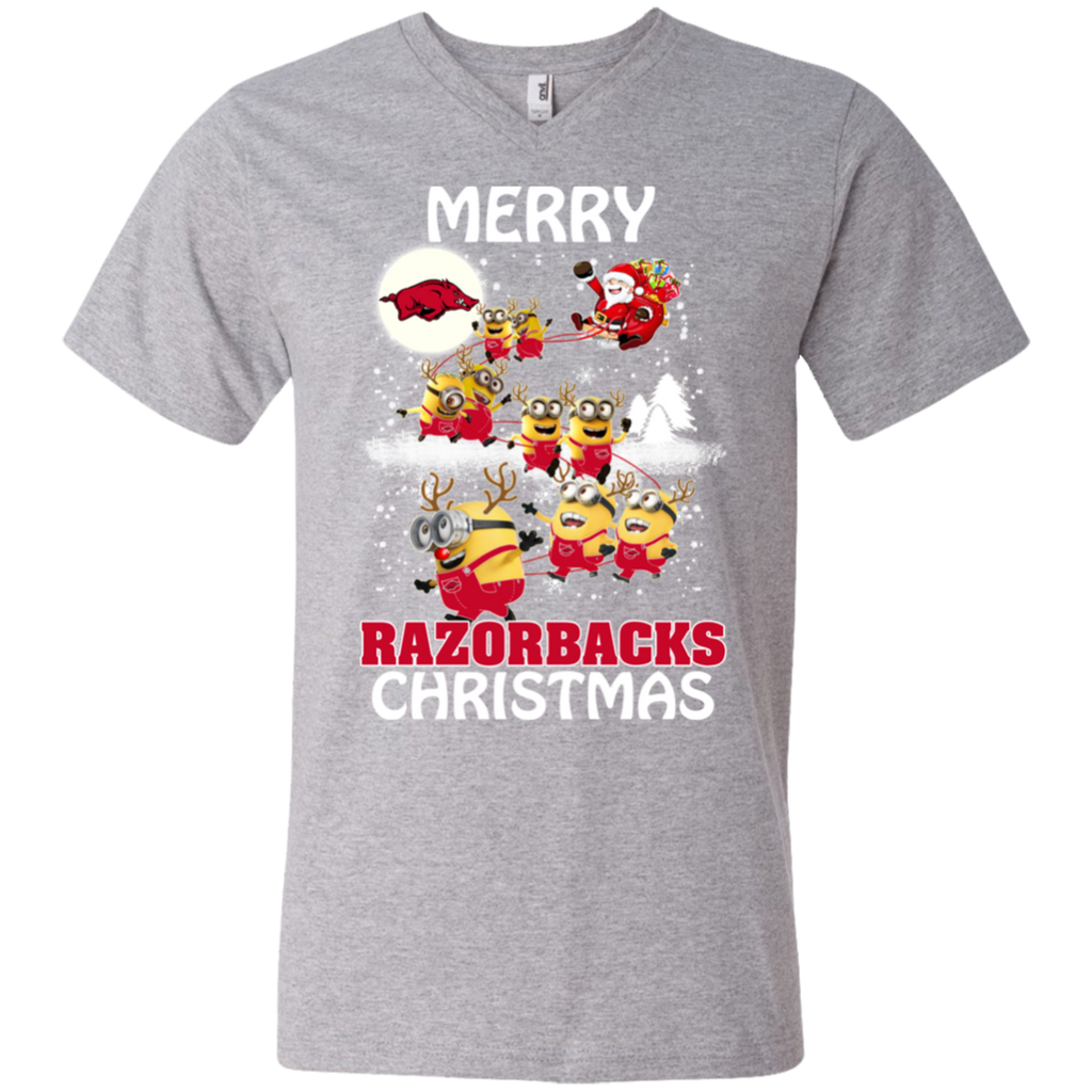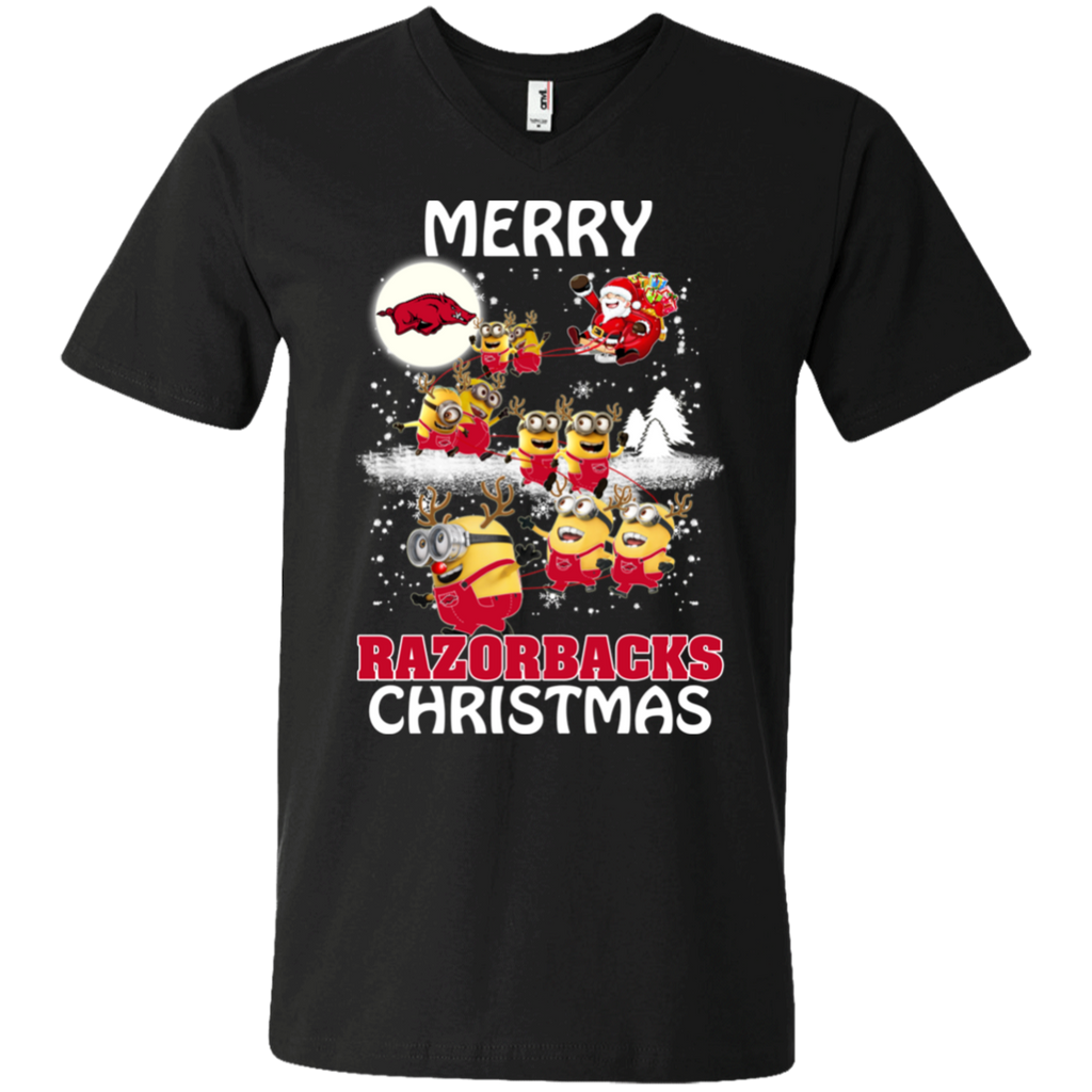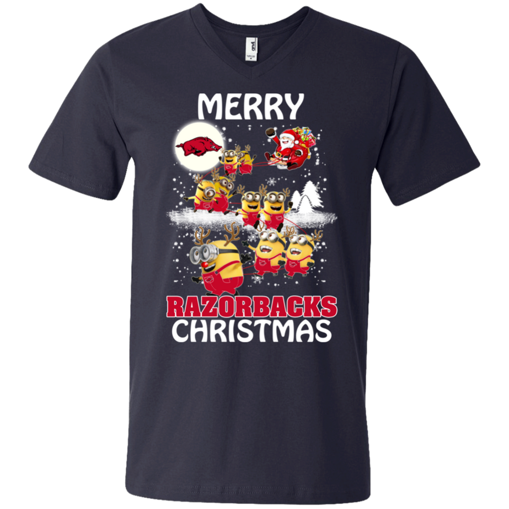 Arkansas Razorback T Shirts Minions Santa Claus Merry Christmas Men's V-Neck T-Shirt