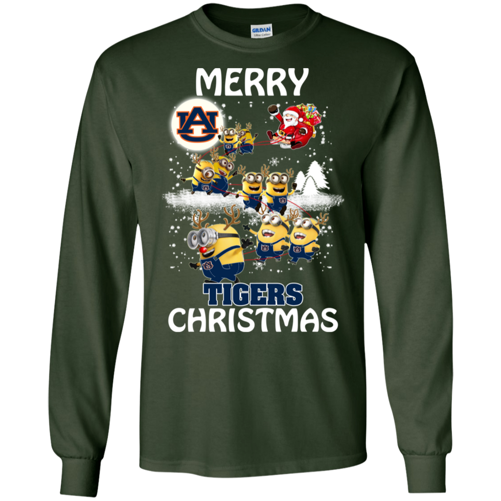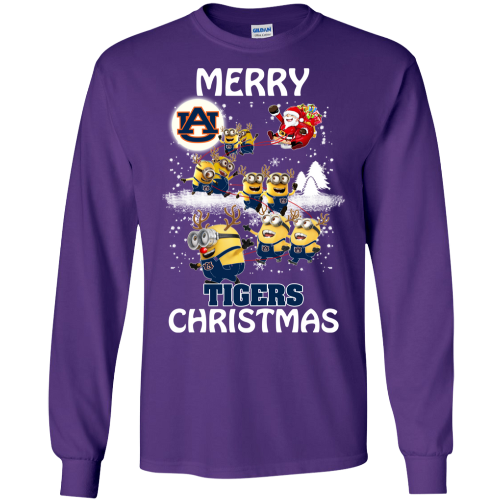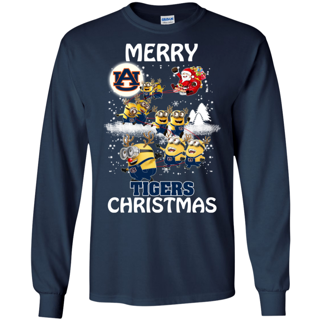 Auburn Tigers Ugly Christmas Sweaters Minions Santa Claus Merry Christmas LS Cotton T-Shirt