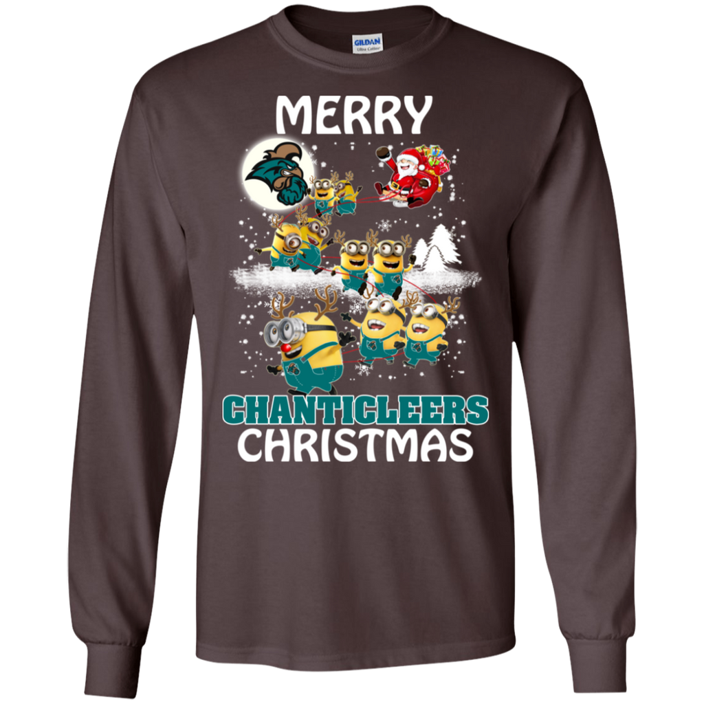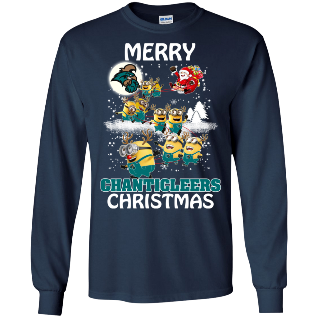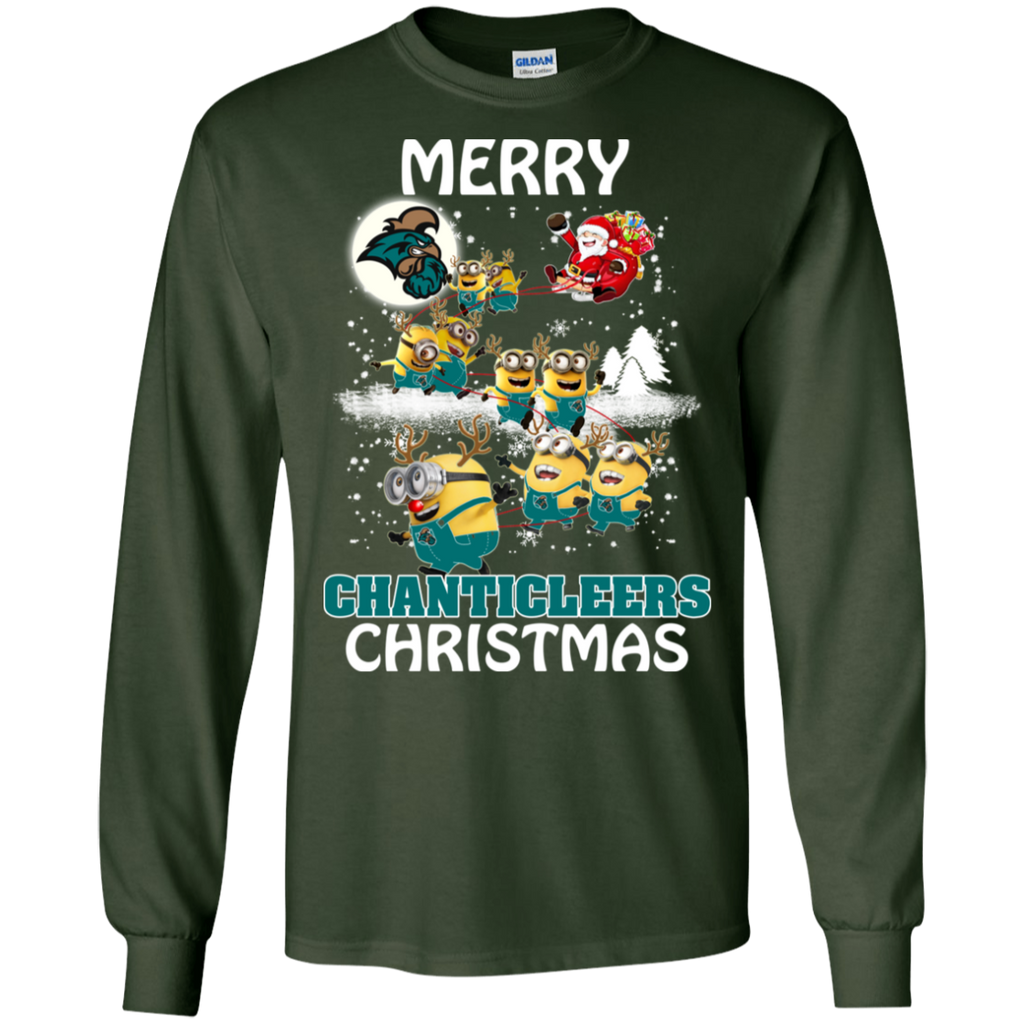 Coastal Carolina Chanticleers Ugly Christmas Sweaters Minions Santa Claus Merry Christmas LS Cotton T-Shirt