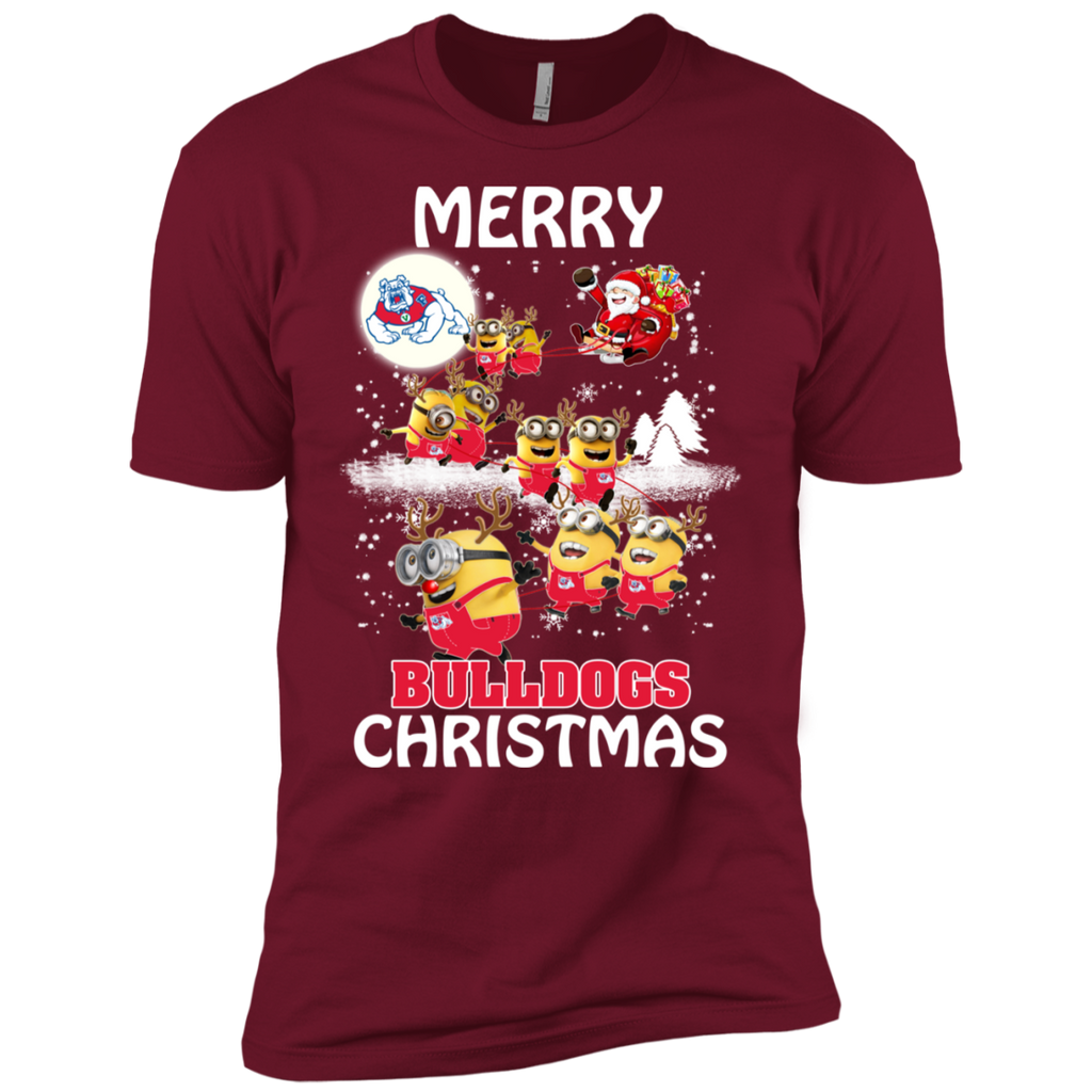 Fresno State Bulldogs Ugly Christmas Sweaters Minions Santa Claus Merry Christmas Men's Sleeve Shirt