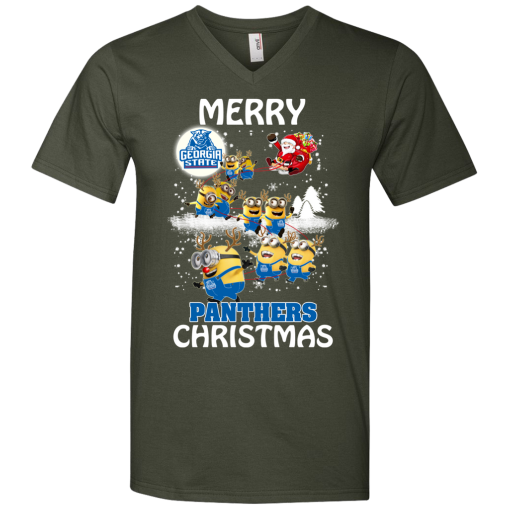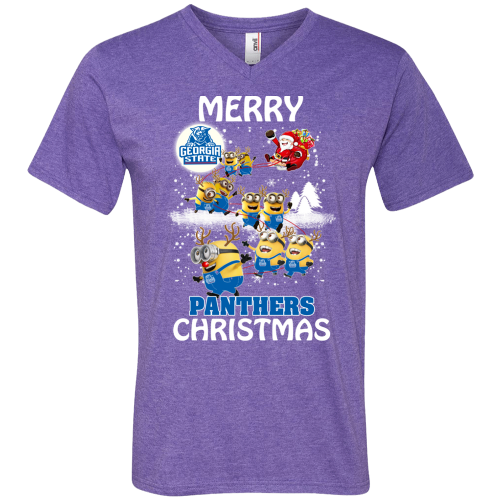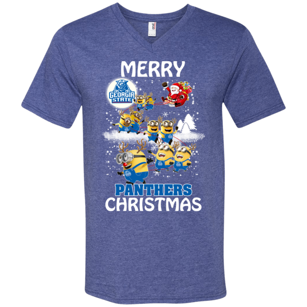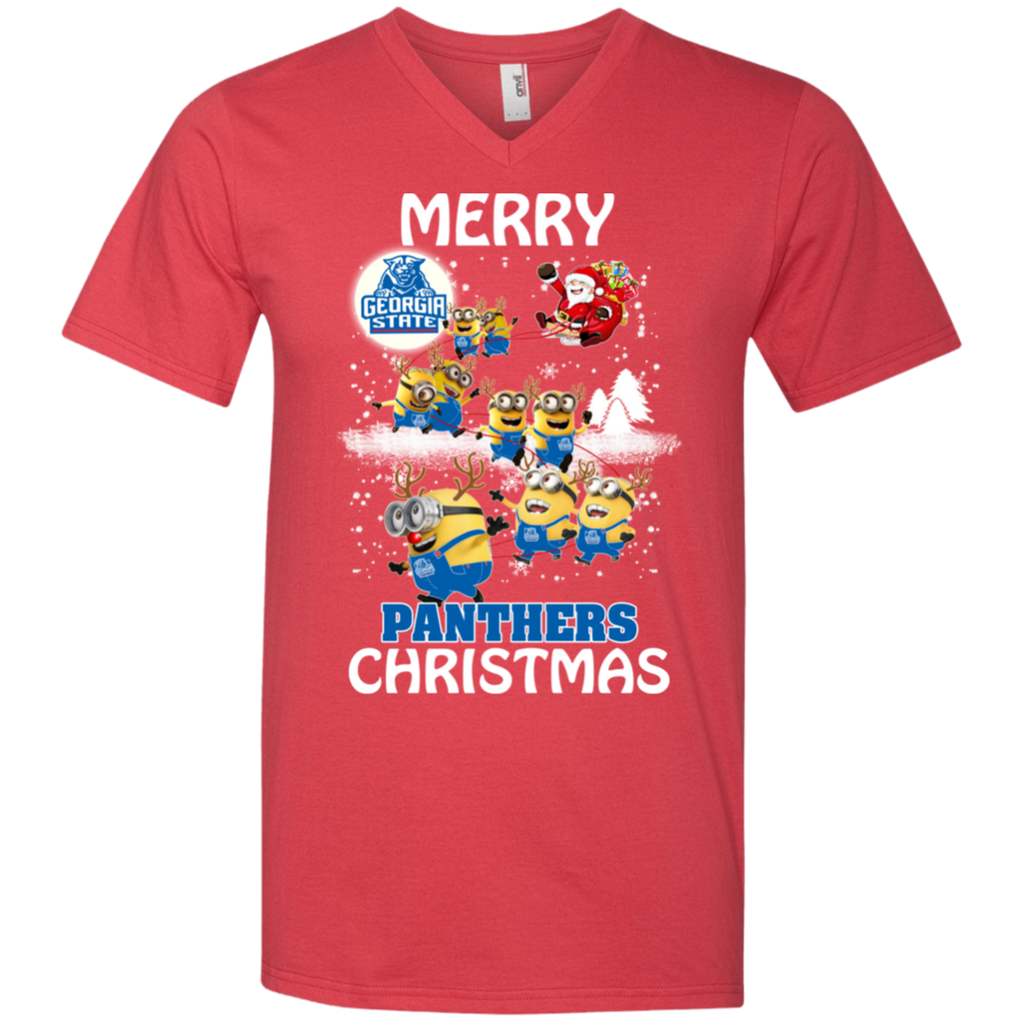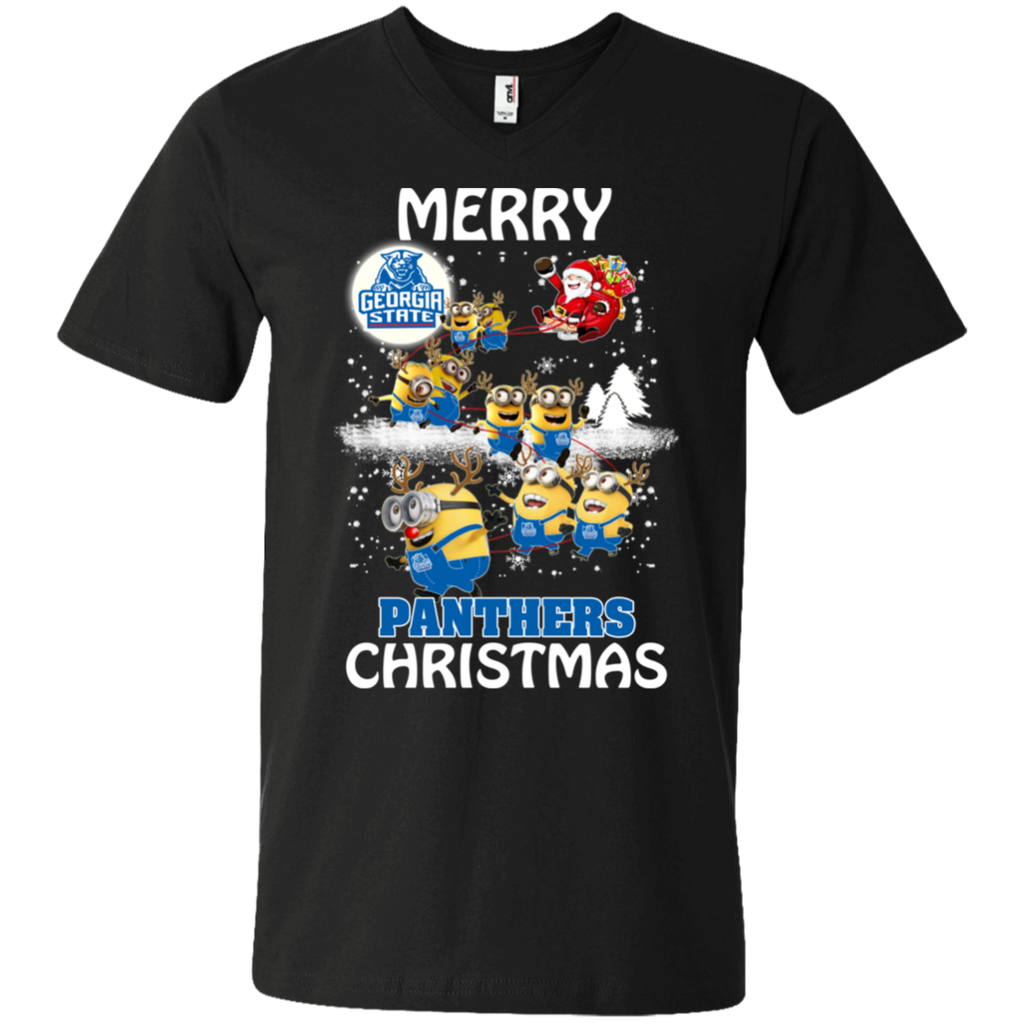 Georgia State Panthers Ugly Christmas Sweaters Minions Santa Claus Merry Christmas Men's V-Neck T-Shirt
