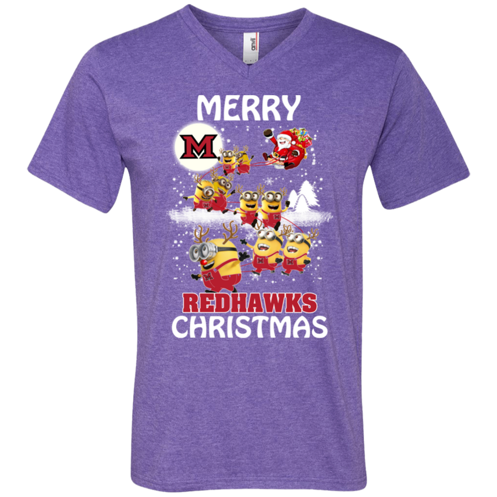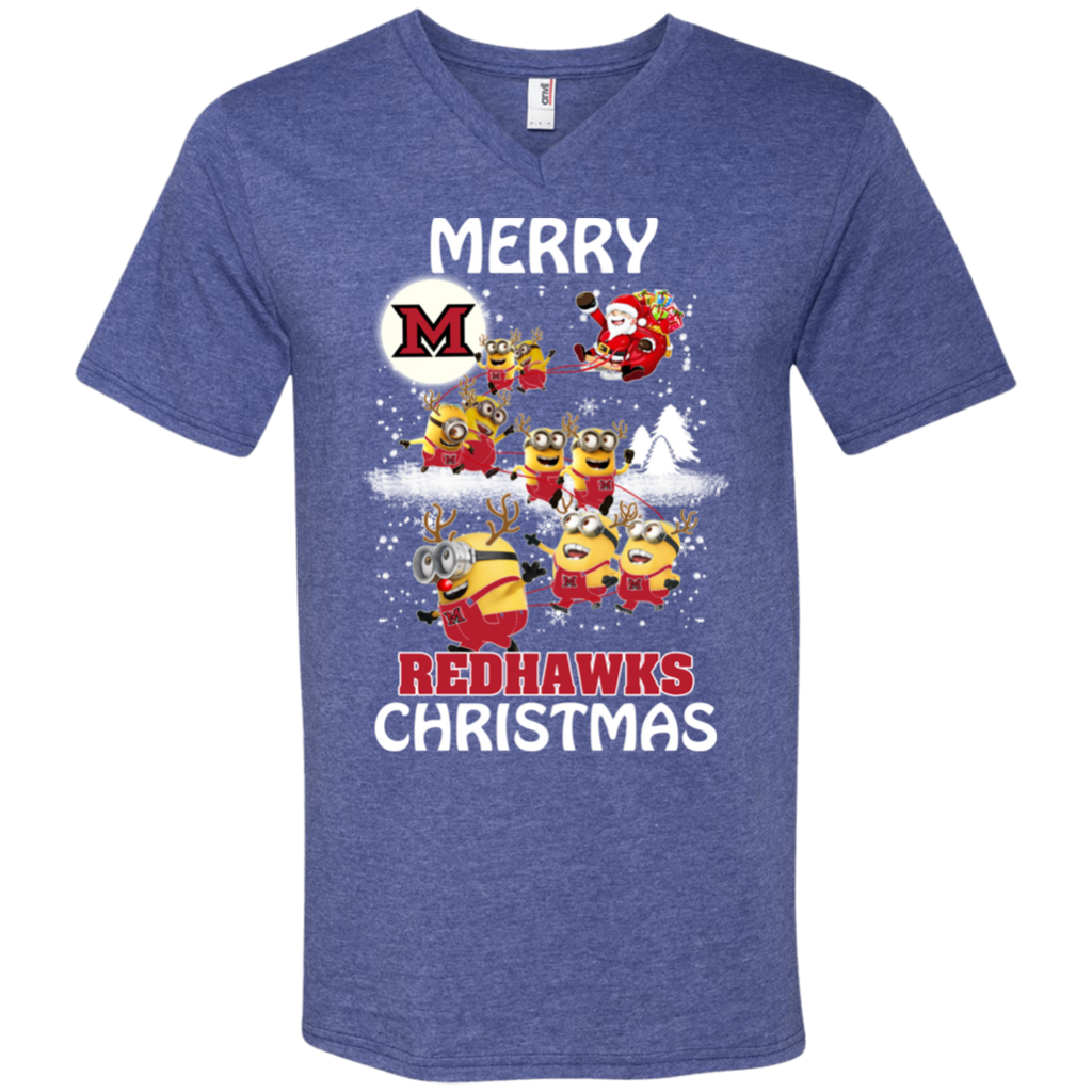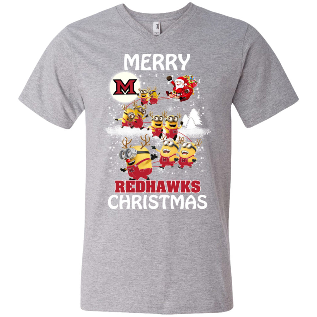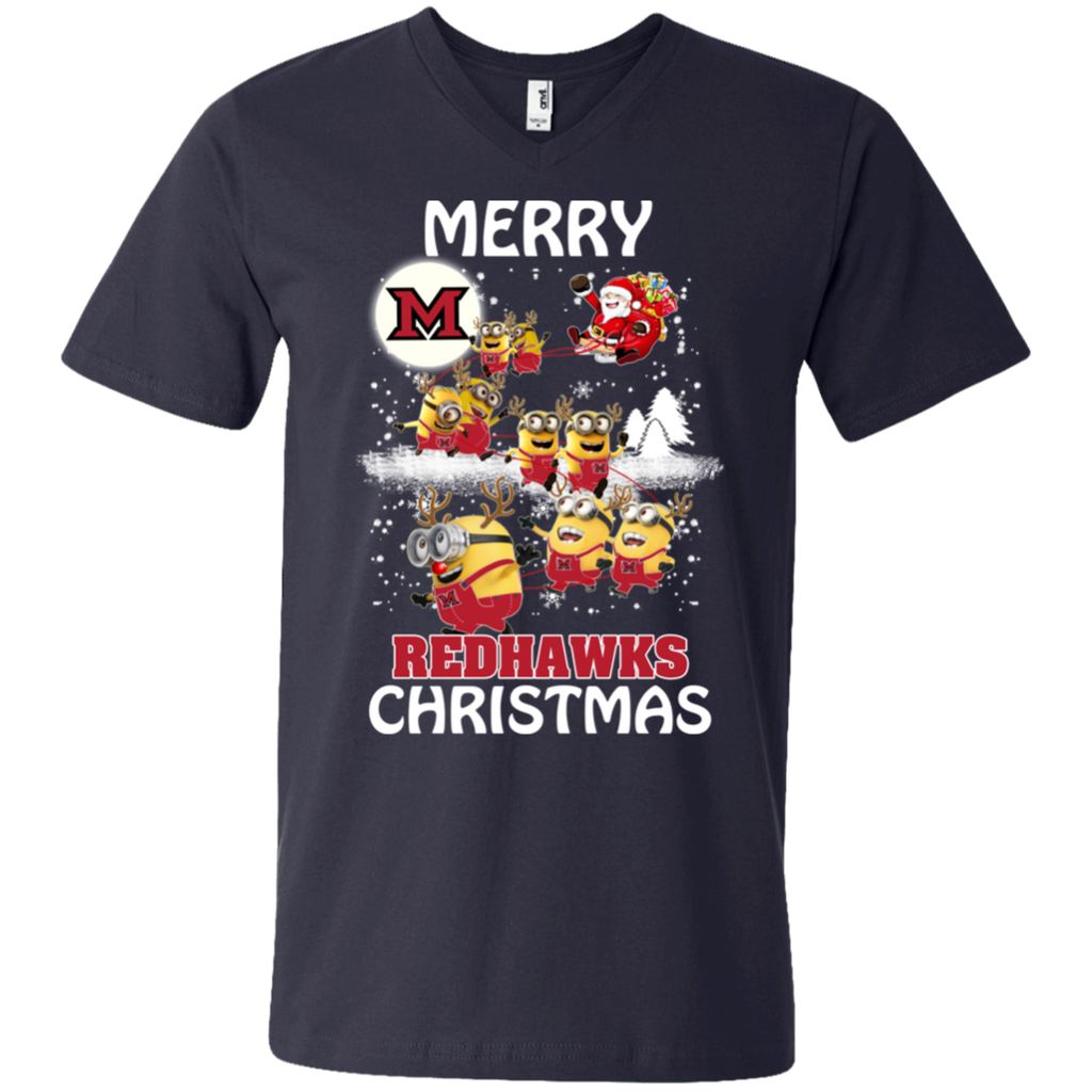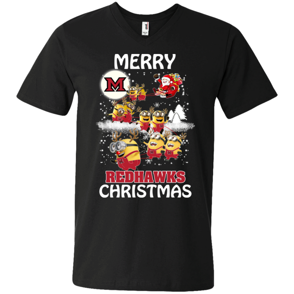 Miami Redhawks Ugly Christmas Sweaters Minions Santa Claus Merry Christmas Men's V-Neck T-Shirt