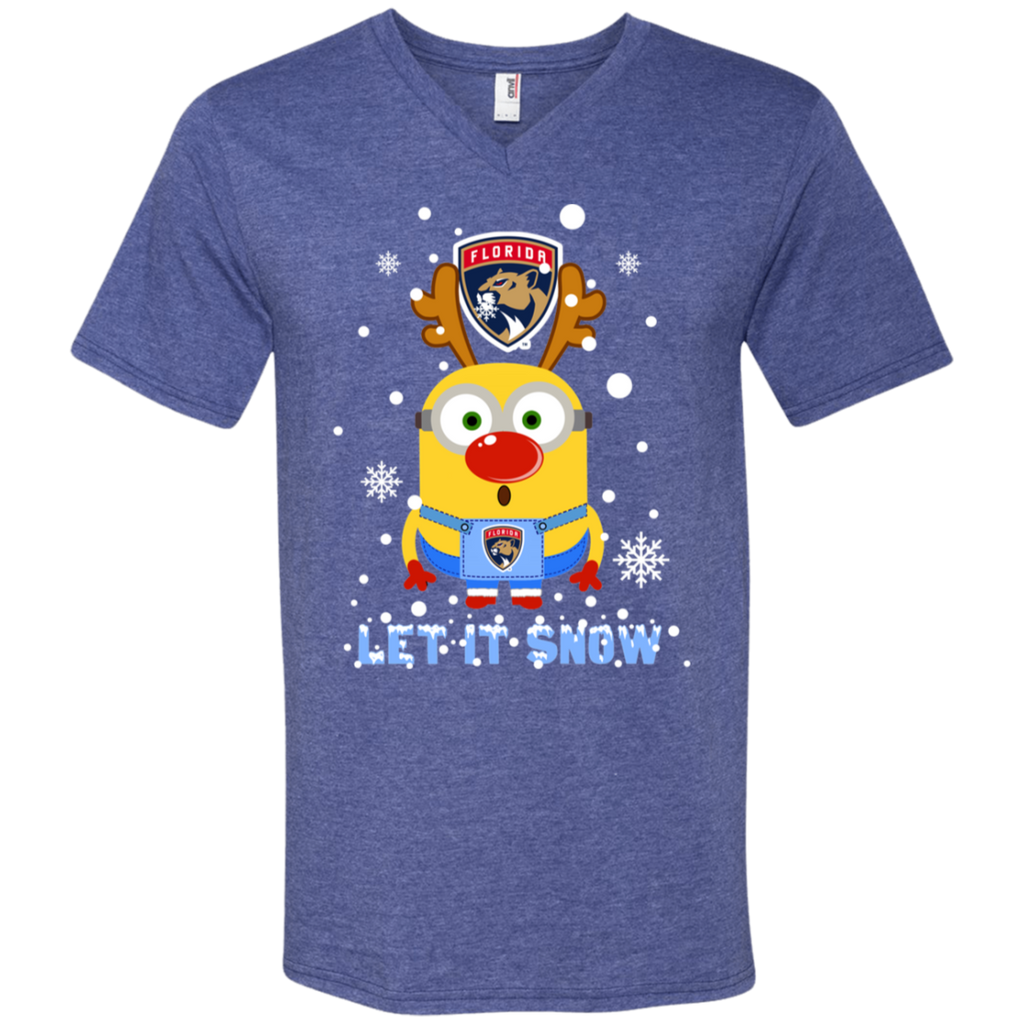 Minion Florida Panthers Ugly Christmas Sweaters Let It Snow Men's V-Neck T-Shirt