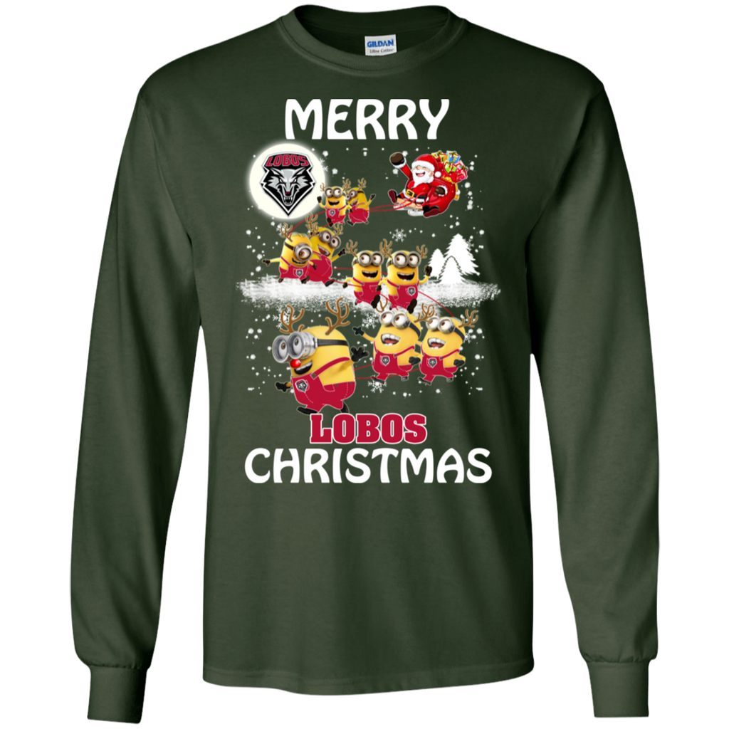 New Mexico Lobos Ugly Christmas Sweaters Minions Santa Claus Merry Christmas LS Cotton T-Shirt