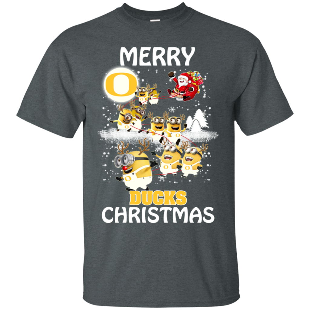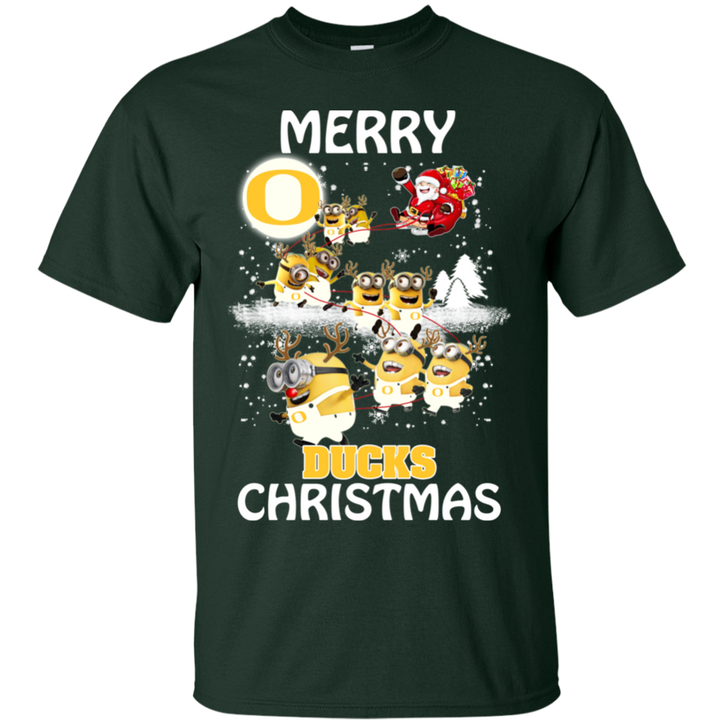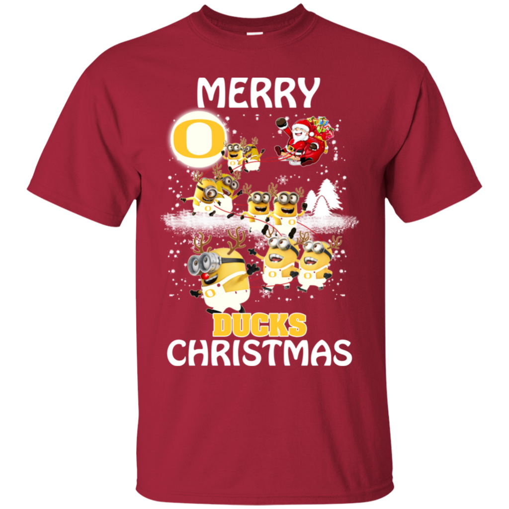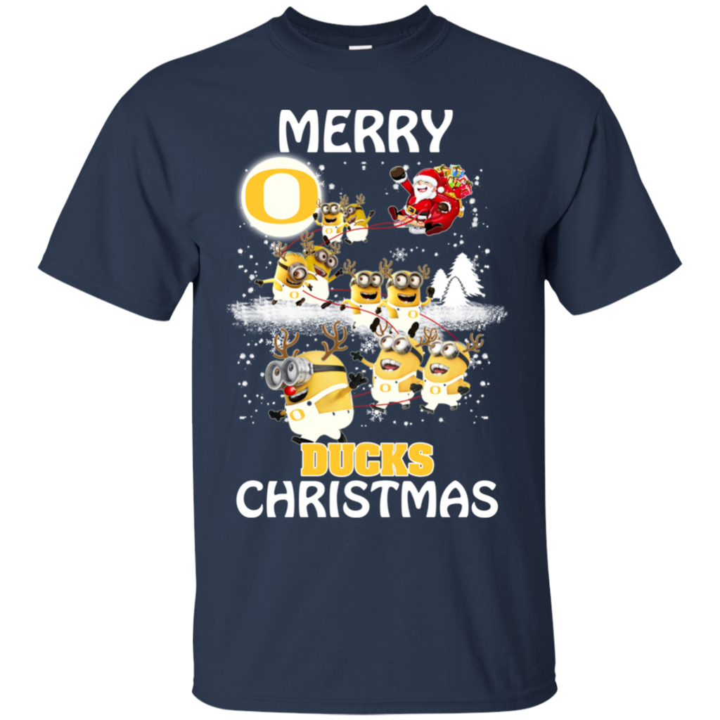 Oregon Ducks Ugly Christmas Sweaters Minions Santa Claus Merry Christmas Cotton T-Shirt