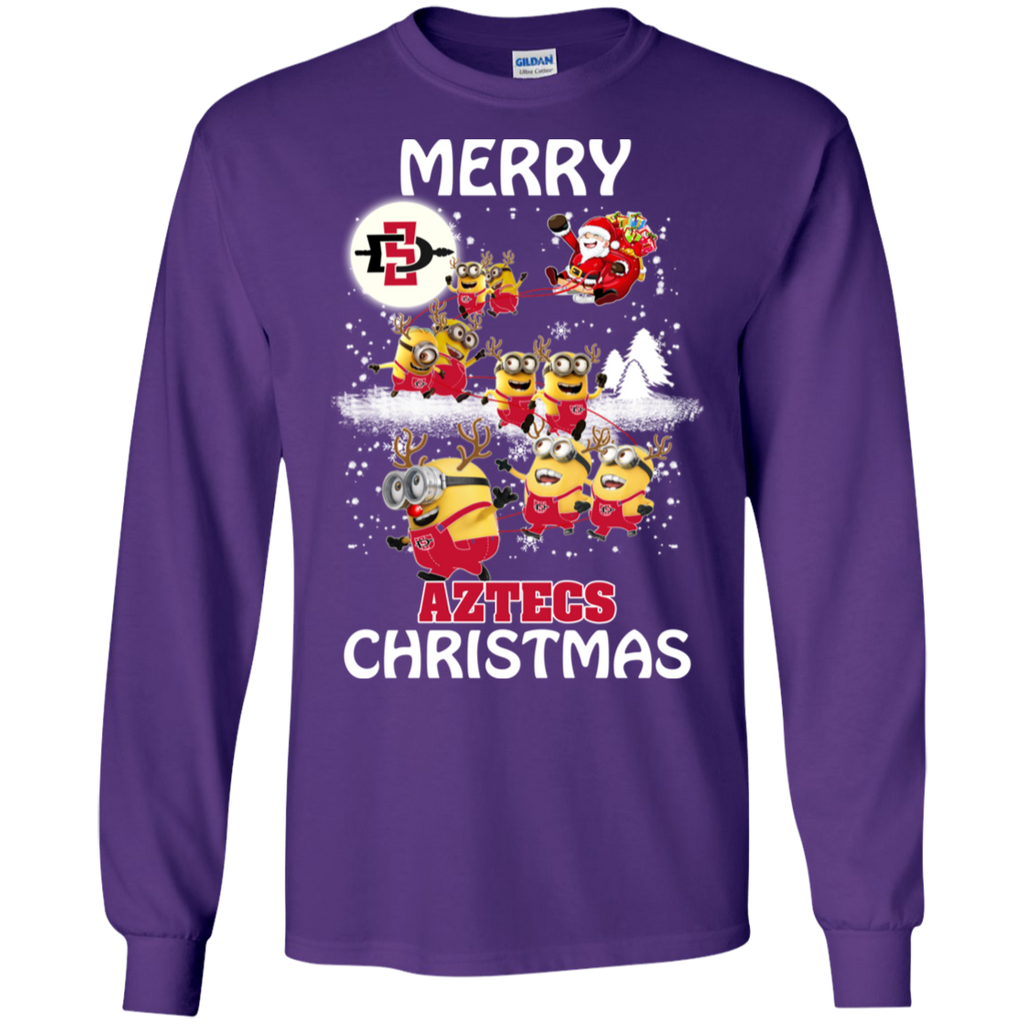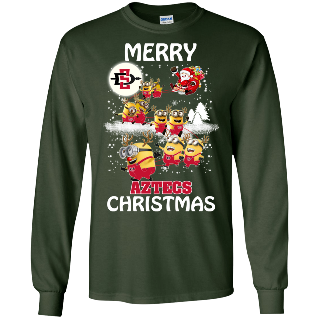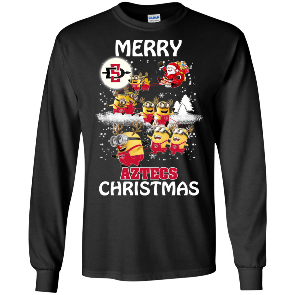 San Diego State Athletics Ugly Christmas Sweaters Minions Santa Claus Merry Christmas LS Cotton T-Shirt