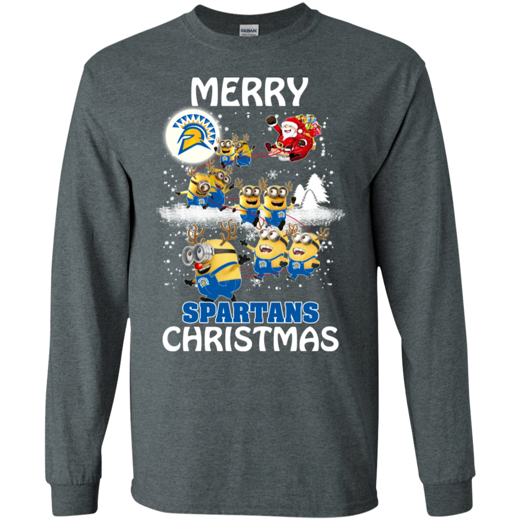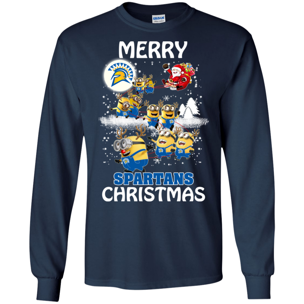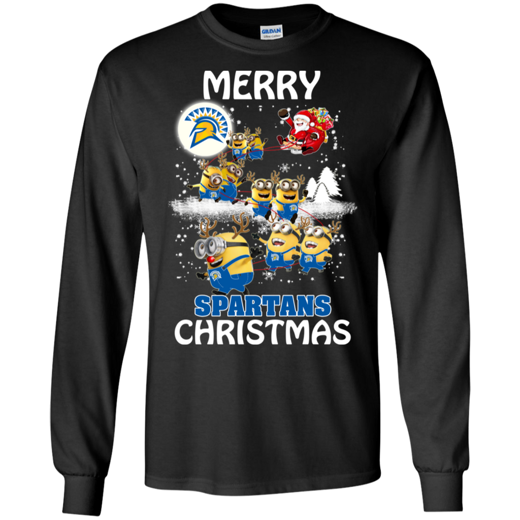 San Jose State Spartans Ugly Christmas Sweaters Minions Santa Claus Merry Christmas LS Cotton T-Shirt