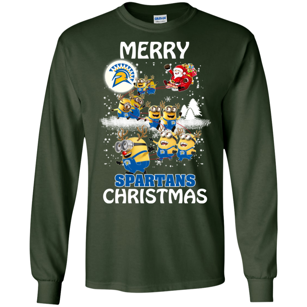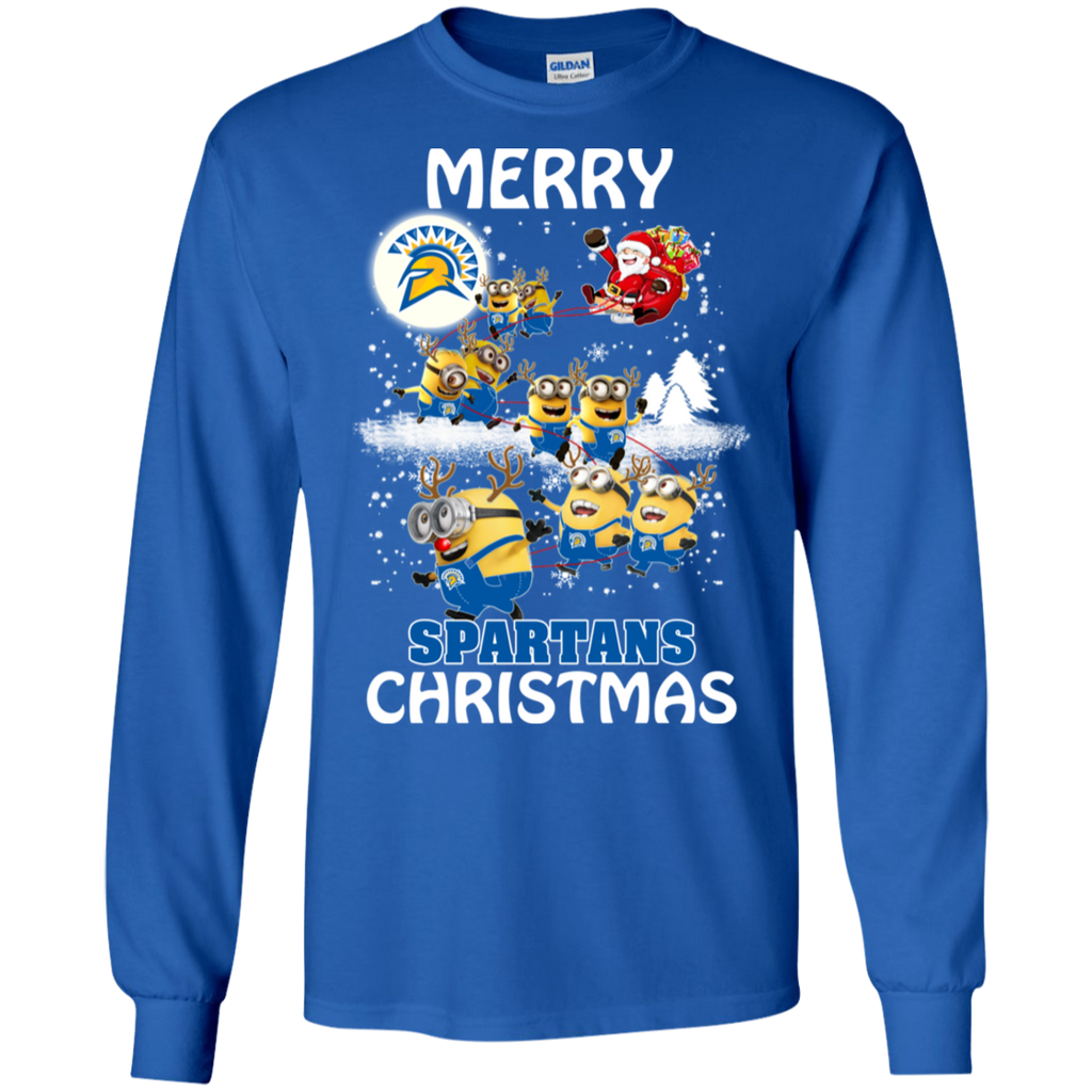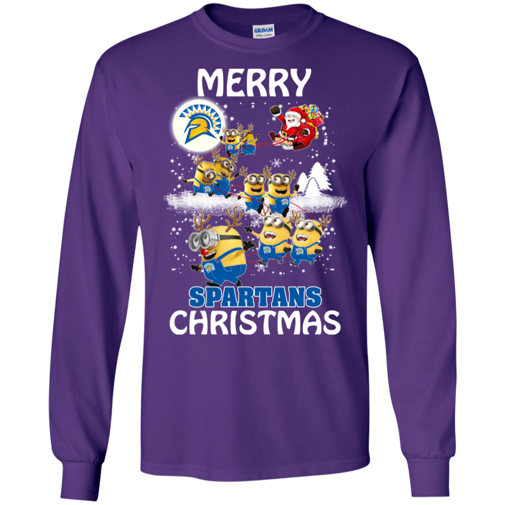 San Jose State Spartans Ugly Christmas Sweaters Minions Santa Claus Merry Christmas LS Cotton T-Shirt