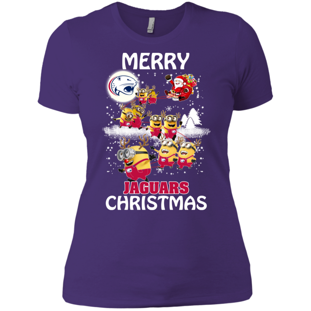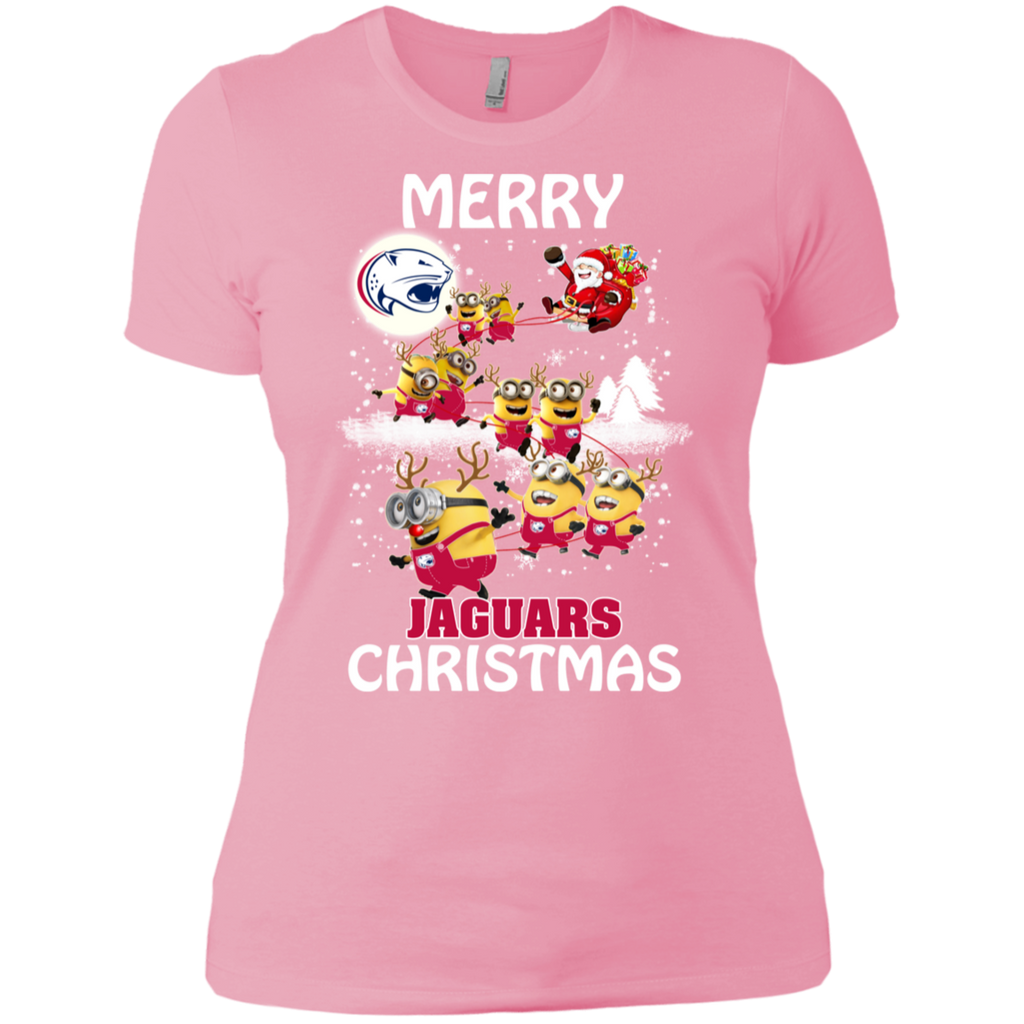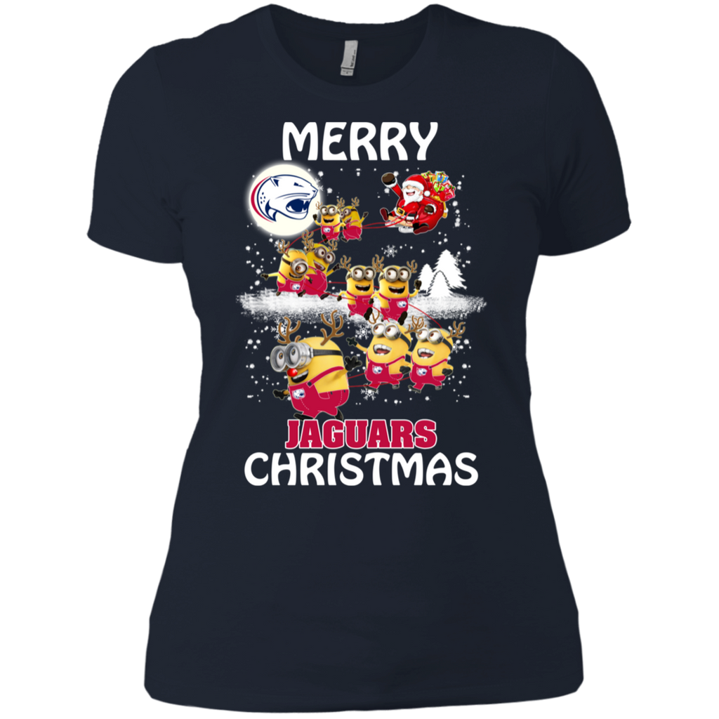 South Alabama Jaguars Ugly Christmas Sweaters Minions Santa Claus Merry Christmas Ladies' Shirt