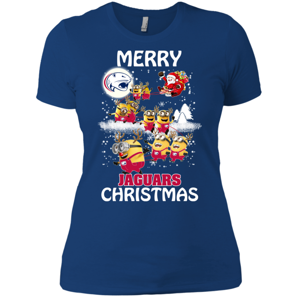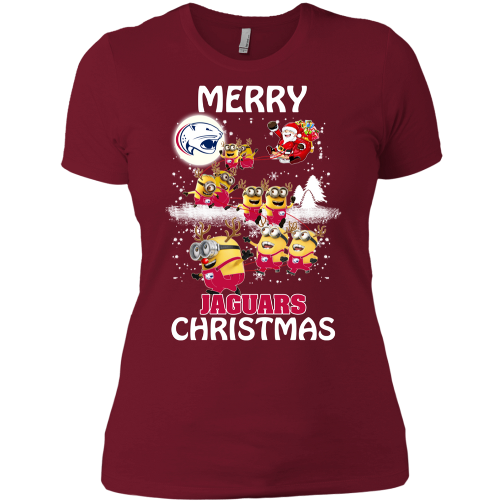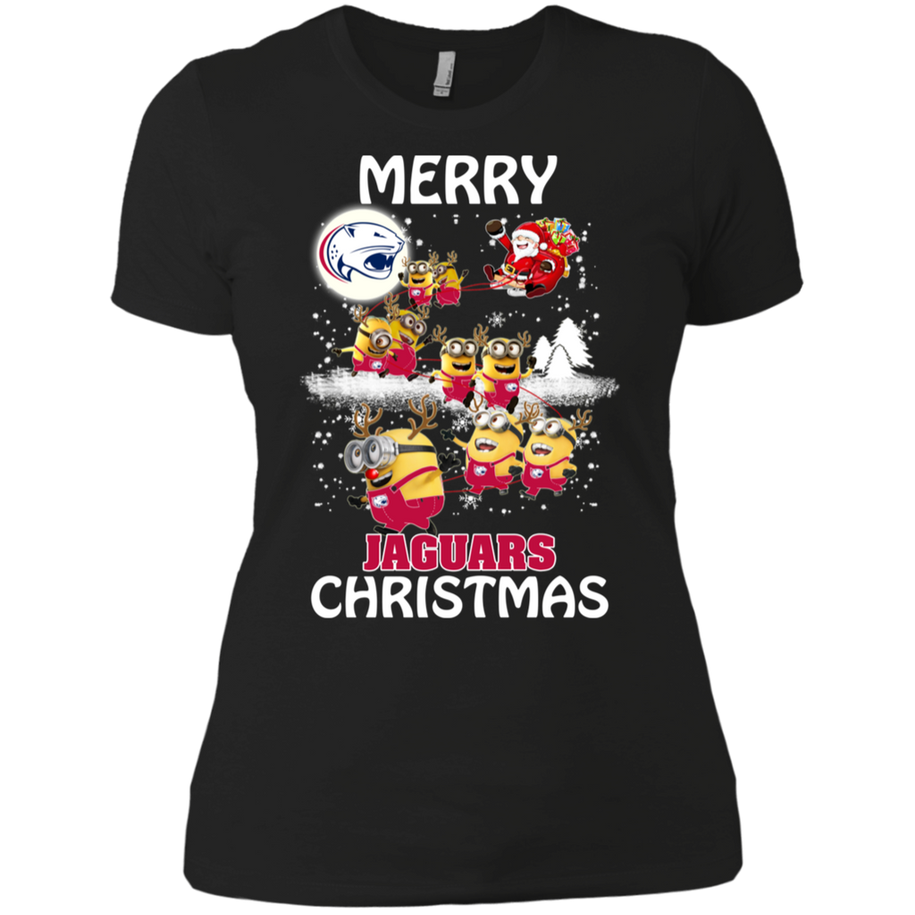 South Alabama Jaguars Ugly Christmas Sweaters Minions Santa Claus Merry Christmas Ladies' Shirt