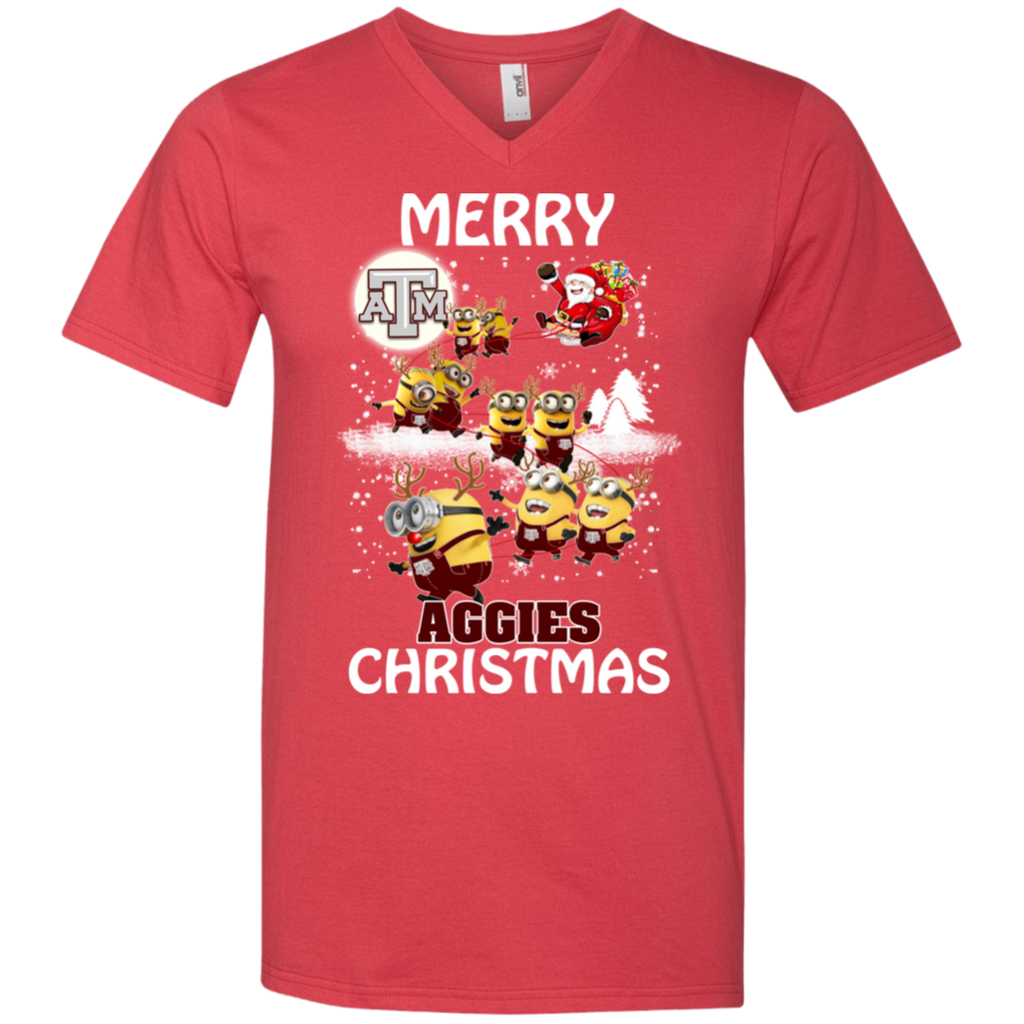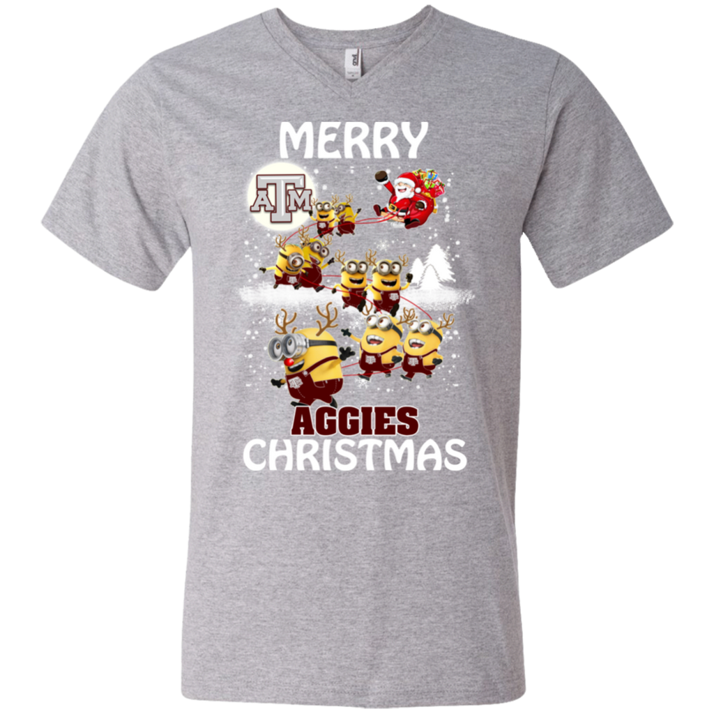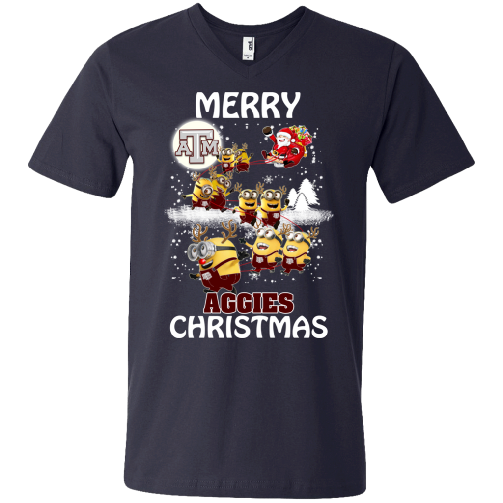 Texas A_amp_m Aggies Ugly Christmas Sweaters Minions Santa Claus Merry Christmas Men's V-Neck T-Shirt