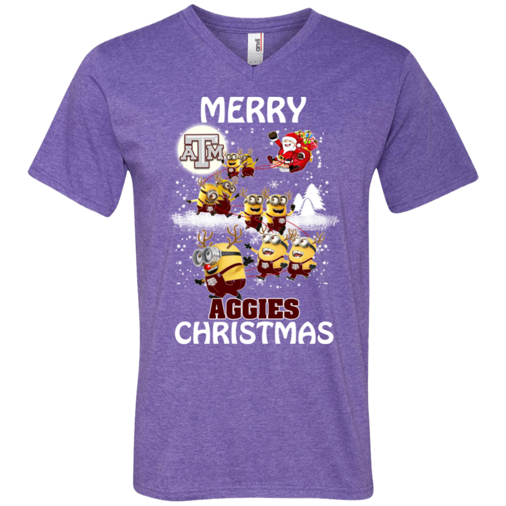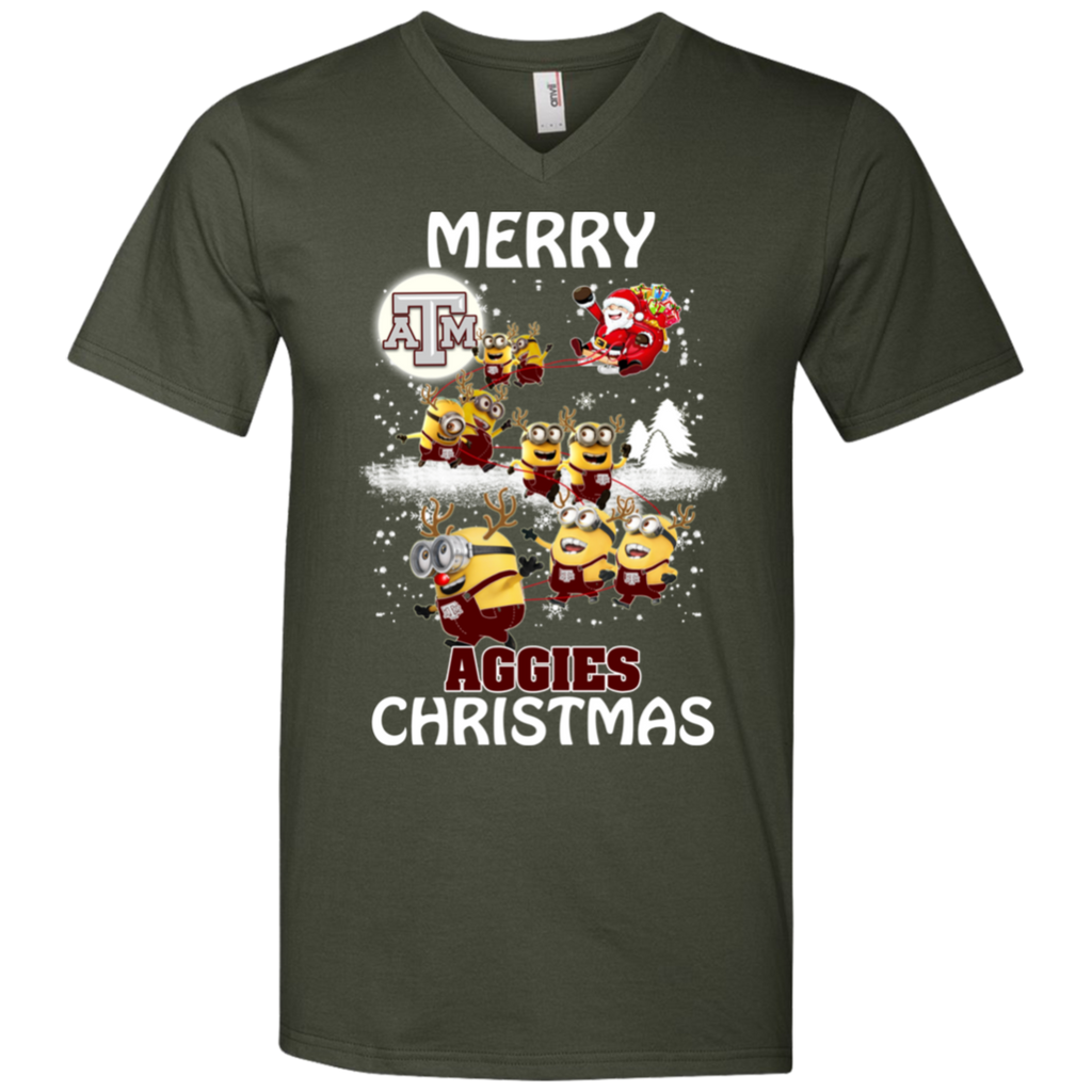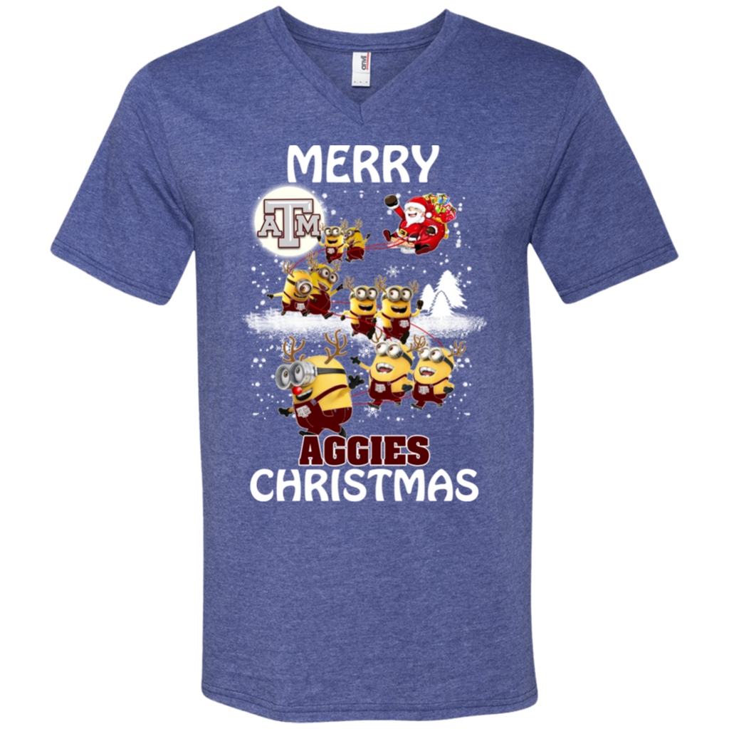 Texas A_amp_m Aggies Ugly Christmas Sweaters Minions Santa Claus Merry Christmas Men's V-Neck T-Shirt
