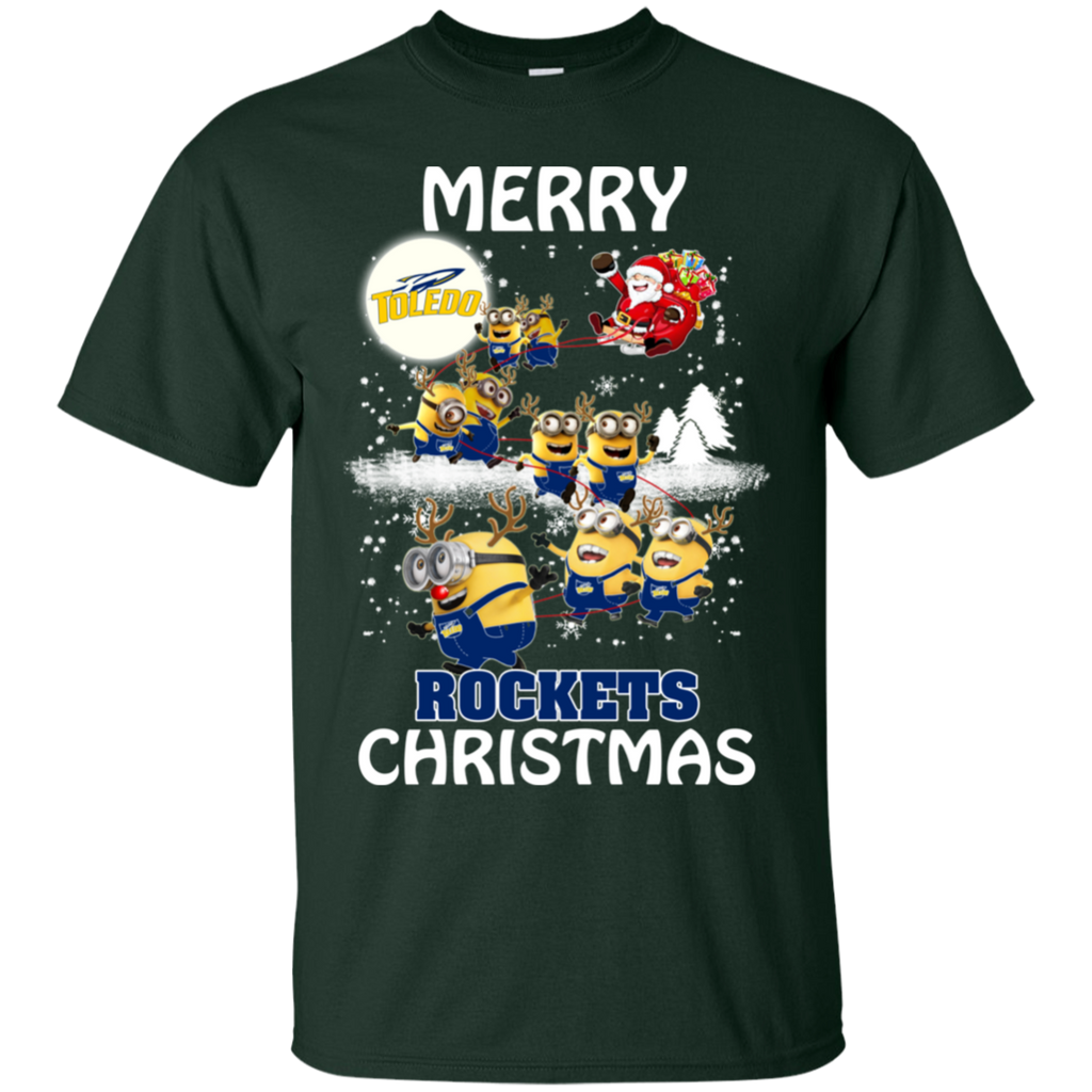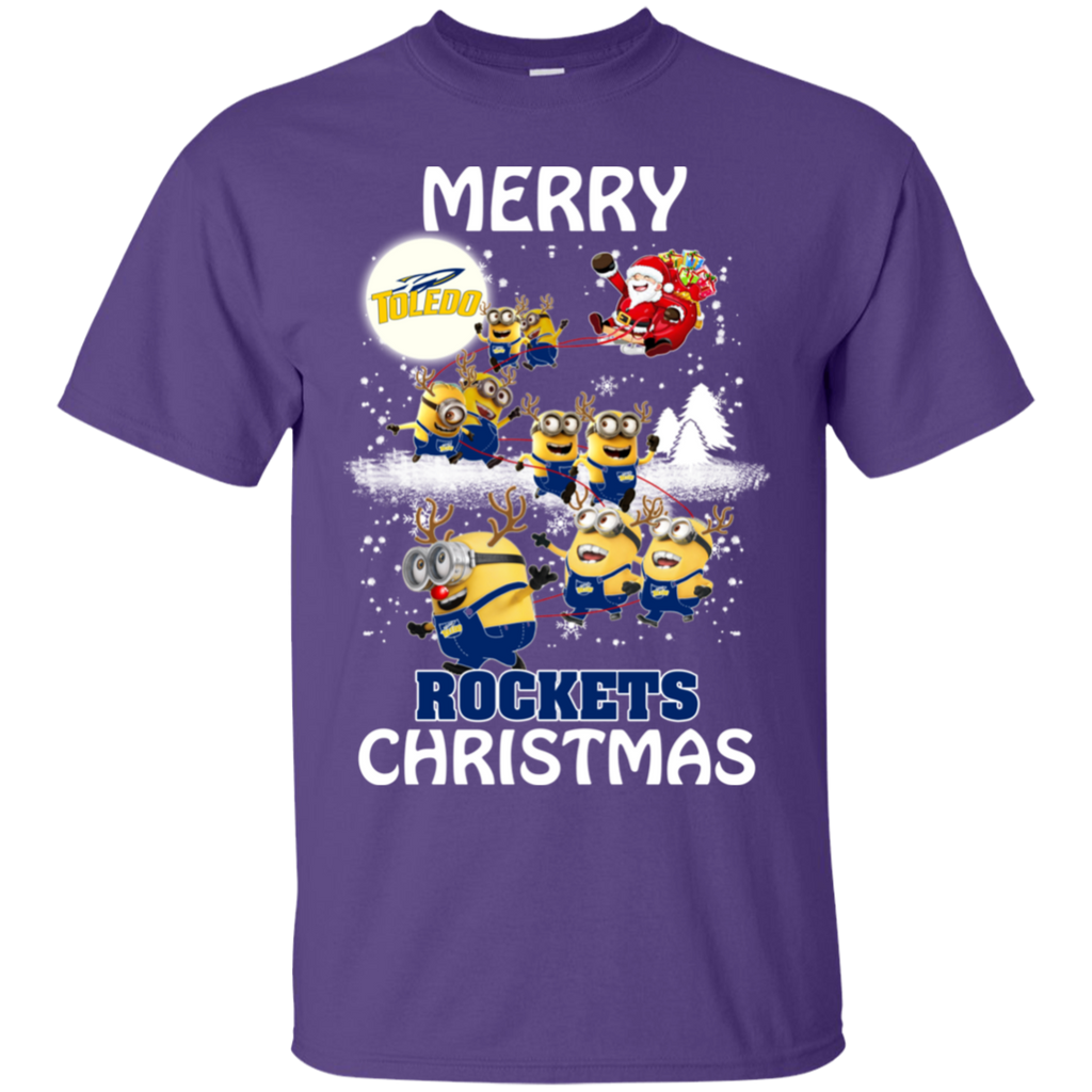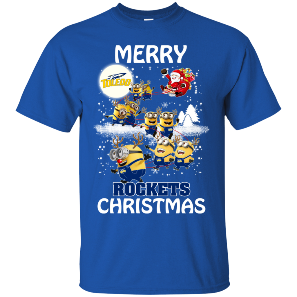 Toledo Rockets Ugly Christmas Sweaters Minions Santa Claus Merry Christmas Cotton T-Shirt