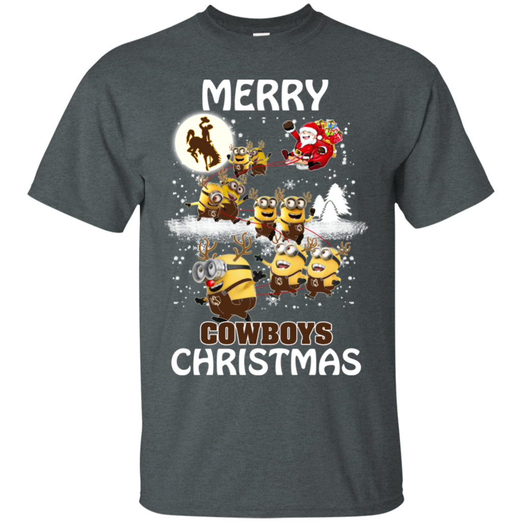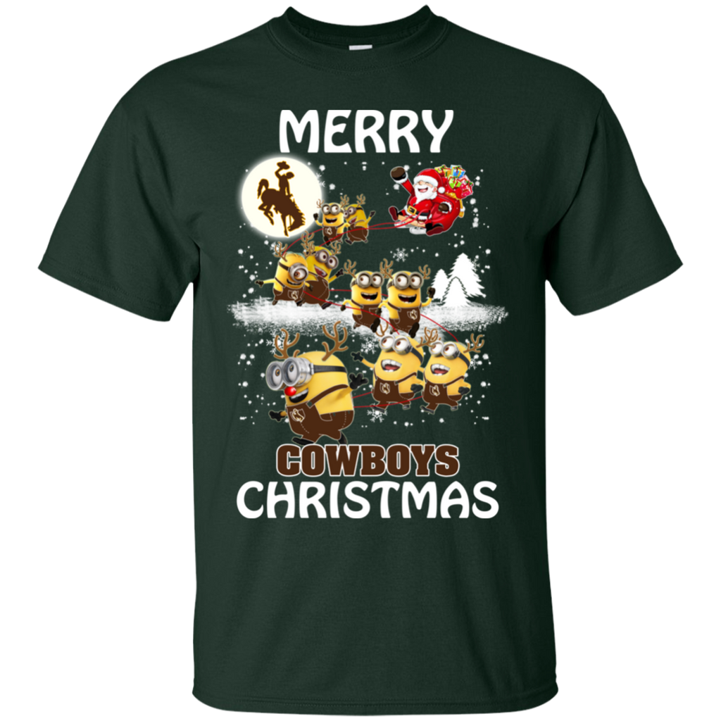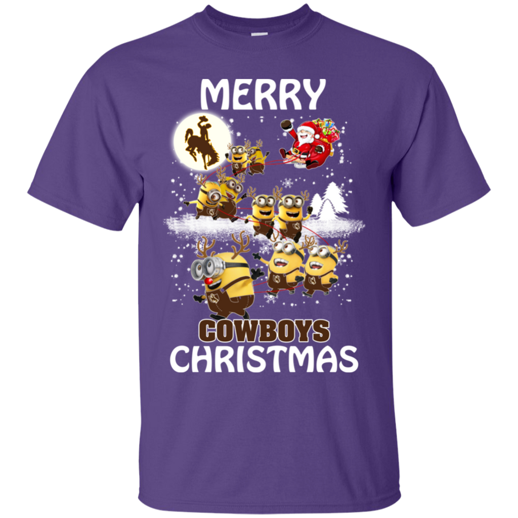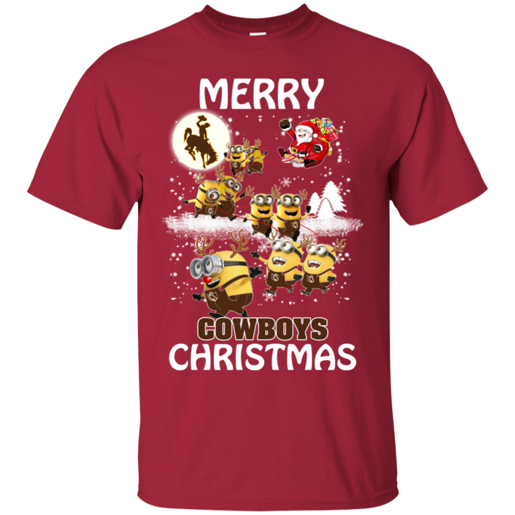 Wyoming Cowboys Ugly Christmas Sweaters Minions Santa Claus Merry Christmas Cotton T-Shirt