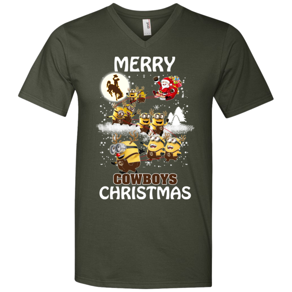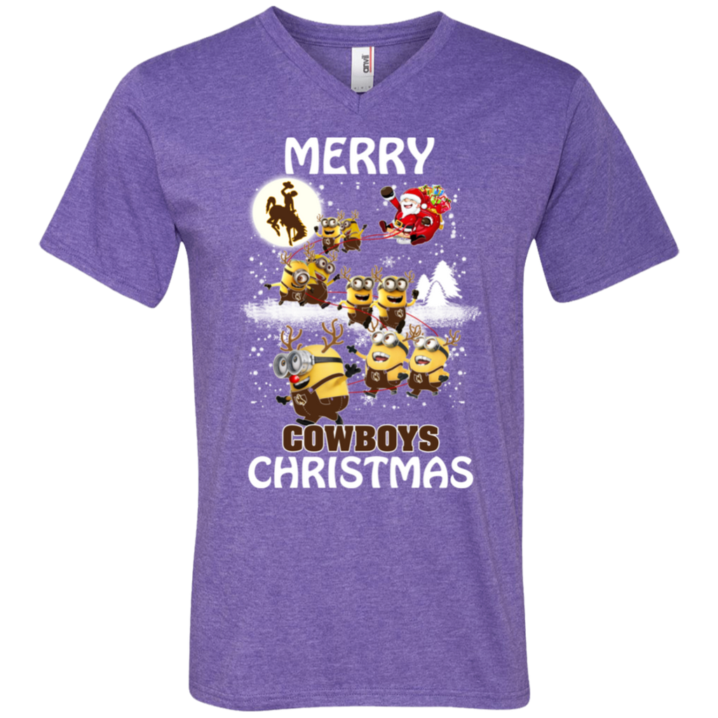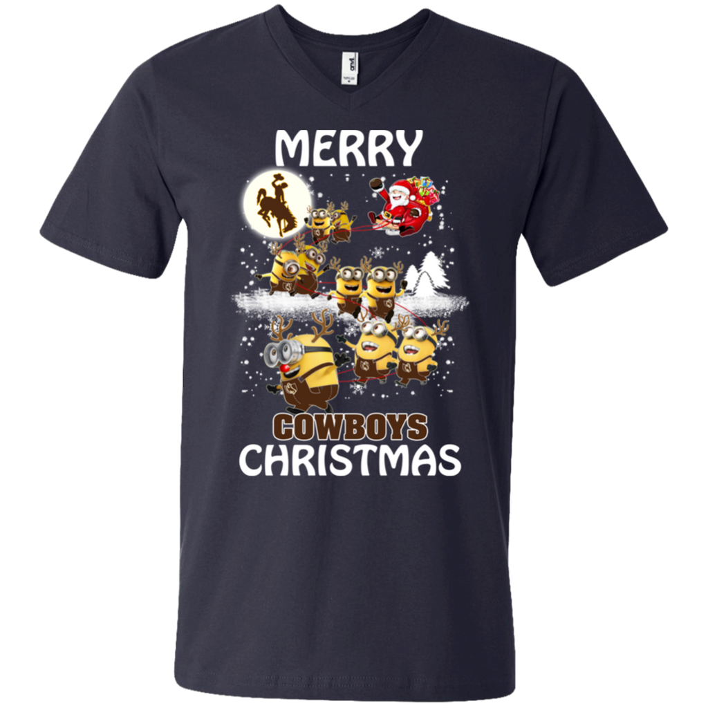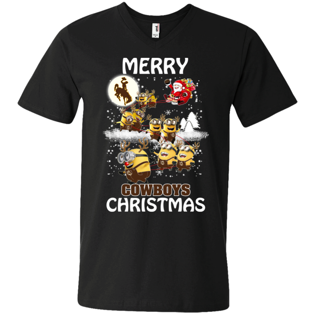 Wyoming Cowboys Ugly Christmas Sweaters Minions Santa Claus Merry Christmas Men's V-Neck T-Shirt